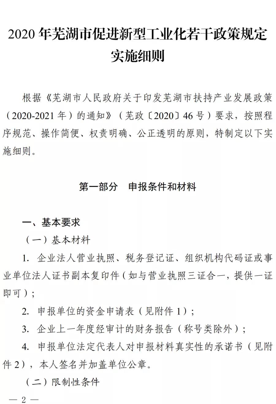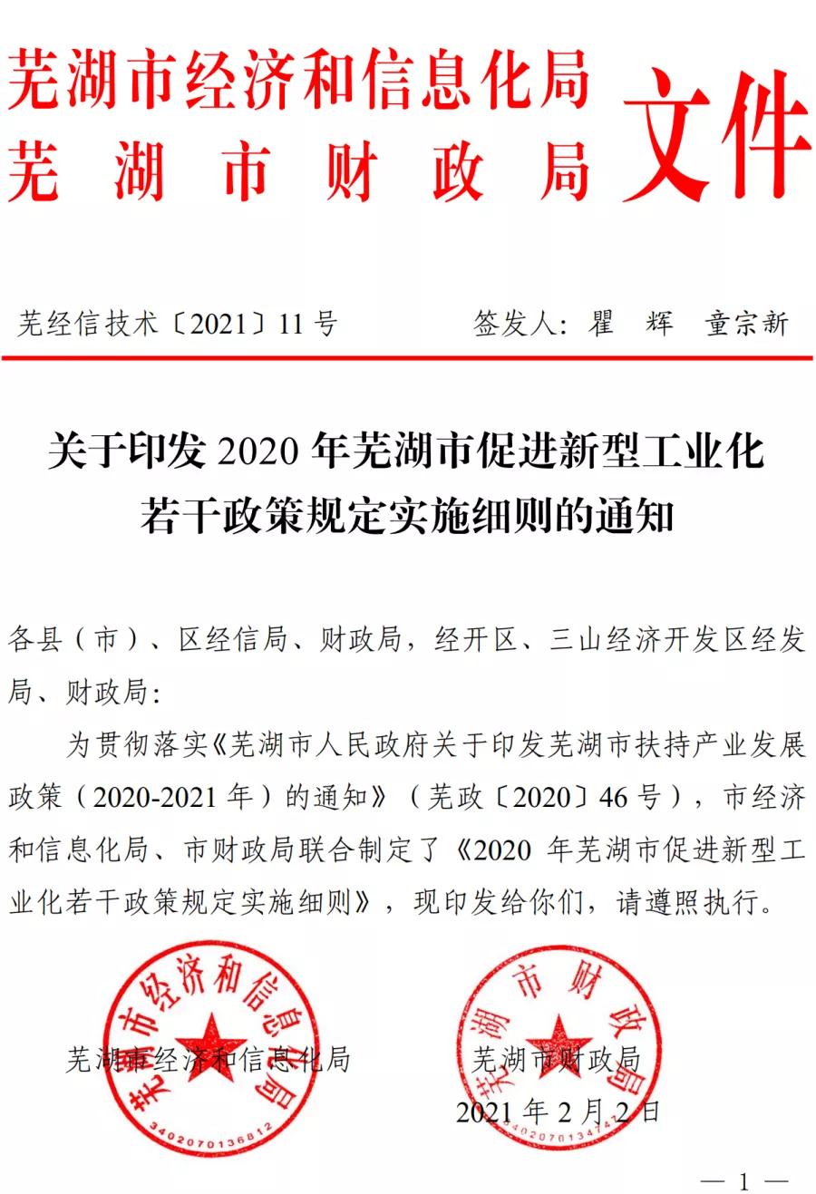 蕪湖市2020年促進新型工業化若干政策規定實施細則印發
