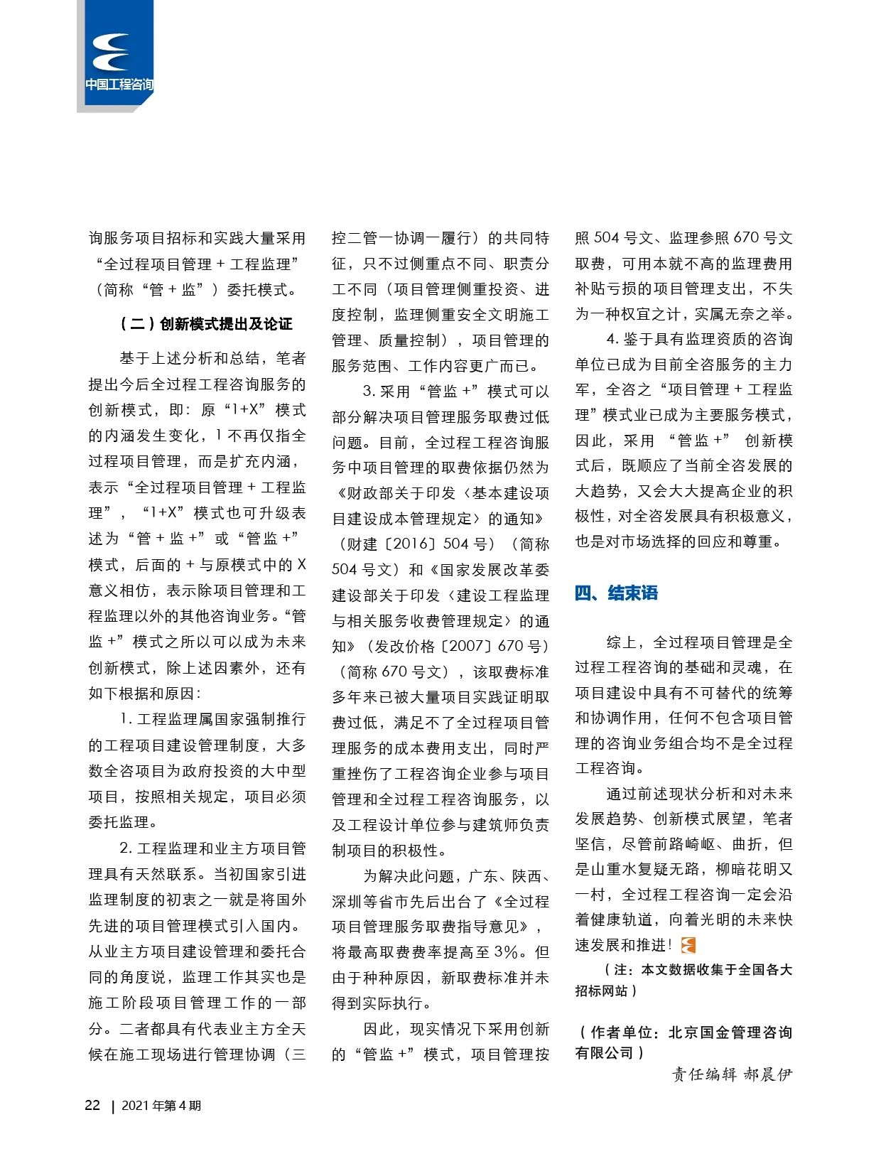 [本期范文]全過(guò)程工程咨詢現(xiàn)狀和發(fā)展創(chuàng)新趨勢(shì)分析